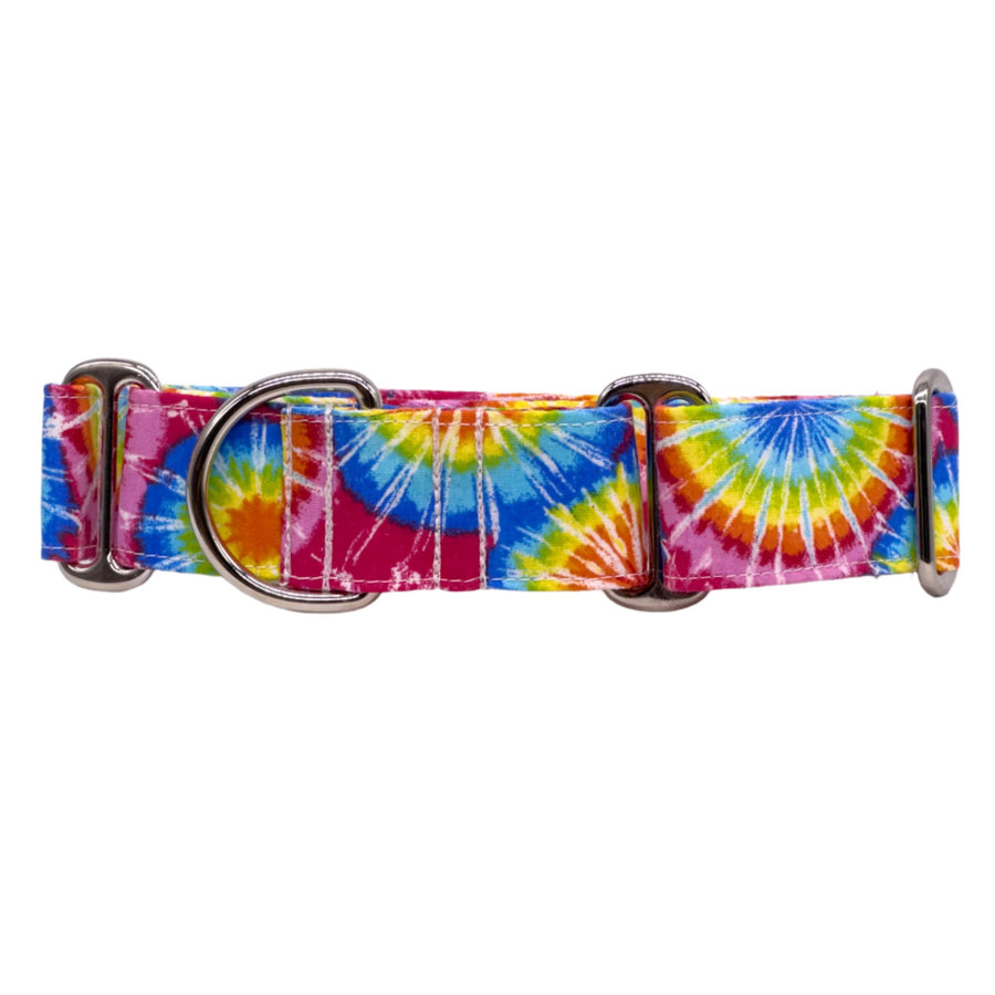 Dive into a spectrum of joy with our 'Rainbow Rapture Tie-Dye Martingale Collar'. Splashed with a kaleidoscope of rainbow hues in a fun tie-dye pattern, this collar is a vibrant statement that celebrates your pup's spirited personality. It's perfect for spreading happiness on every walk and playdate. 🌈🐕