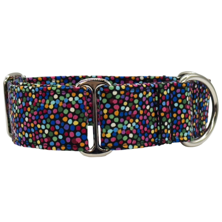 Introducing the "Rainbow Speckle Nightfall Martingale Collar," a chic fusion of mysterious black and vibrant rainbow speckles. This eye-catching collar offers not just style but also unmatched safety features for your furry friend. 🌈🖤