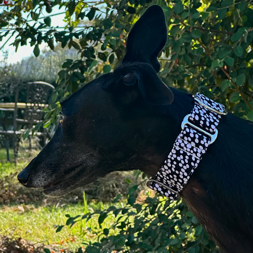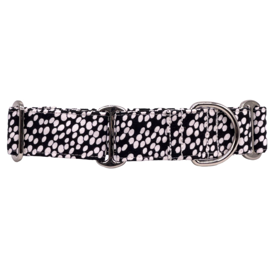 Unleash tranquility with the Spotted Serenity Martingale Collar, where every spot and dot is a step towards serene walks. Crafted for comfort and style, this design weaves together a tapestry of calm with its monochrome palette. Perfect for the pooch who carries a peaceful presence, this collar isn’t just about looking good — it’s about feeling zen, too.