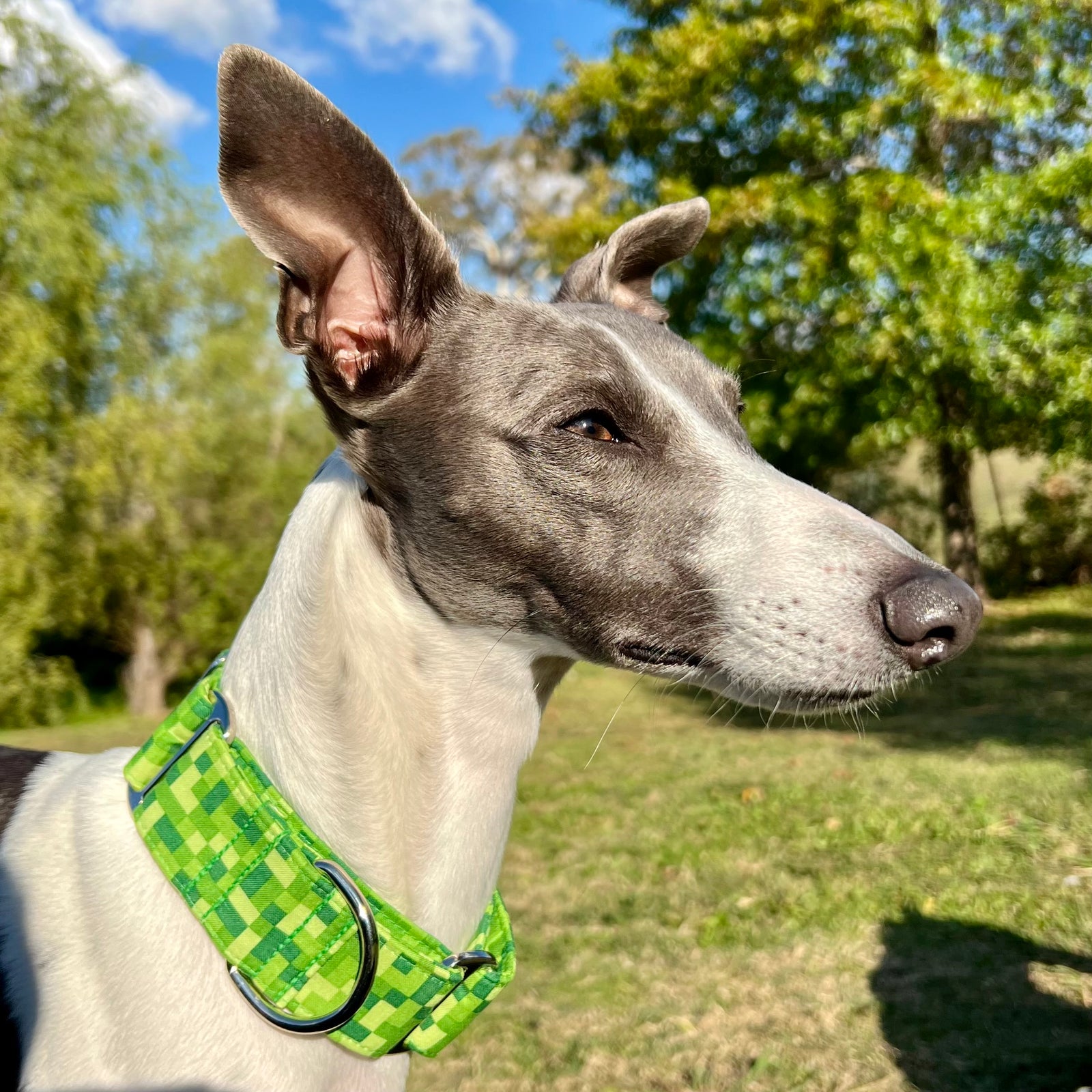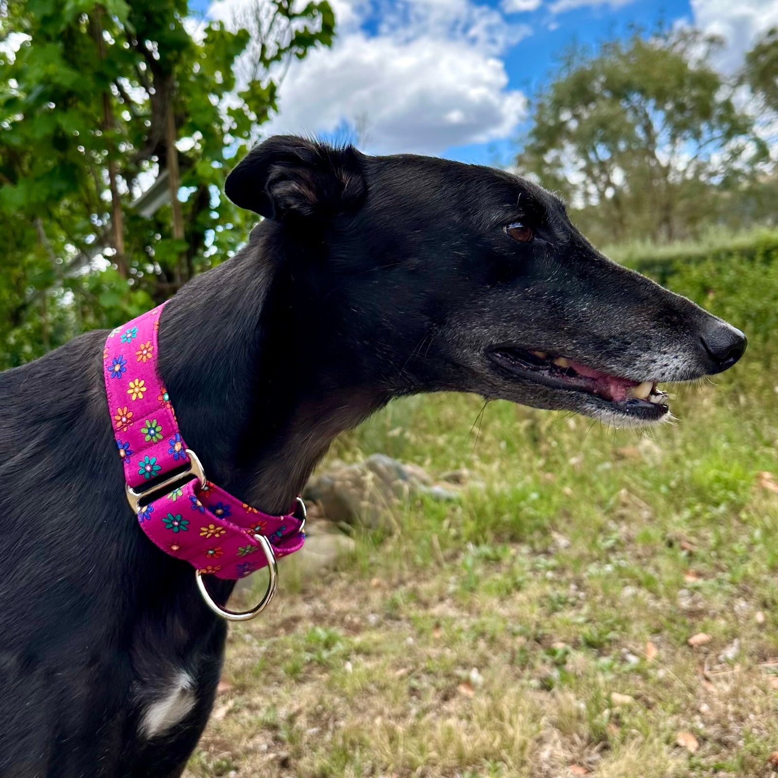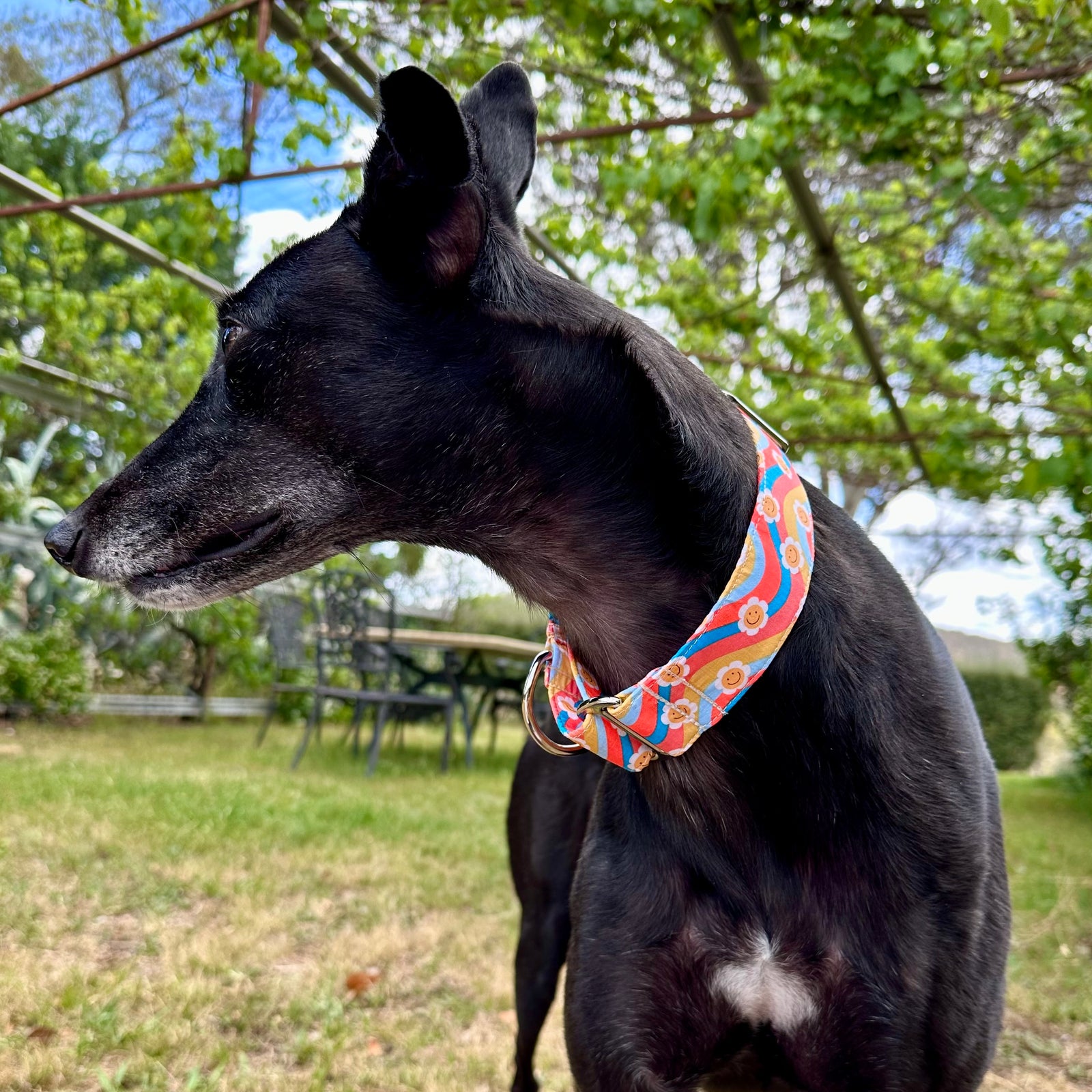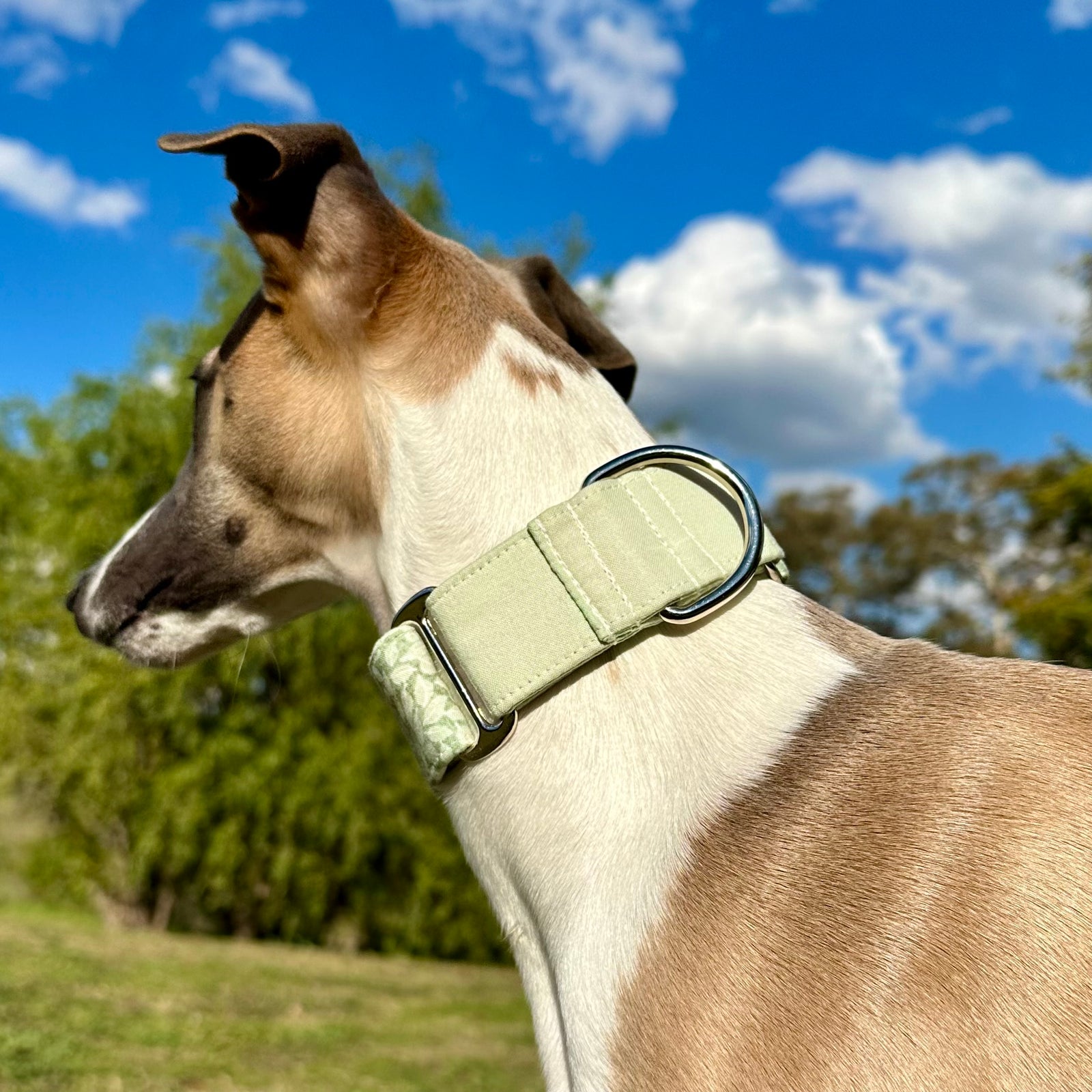 Our martingale dog collars are designed to help prevent dogs from slipping out while providing a comfortable, secure fit. Loved by greyhounds, whippets, and other breeds, they offer gentle control without harsh tightening. Each collar is handmade in our rural NSW studio using high-quality materials and eye-catching fabrics, so your dog can stay safe while looking stylish on every walk. With a wide range of colours and designs to choose from, there’s a Furever Greys collar to match every dog’s personality. Shop our martingale collars and find the perfect fit for your pup today.