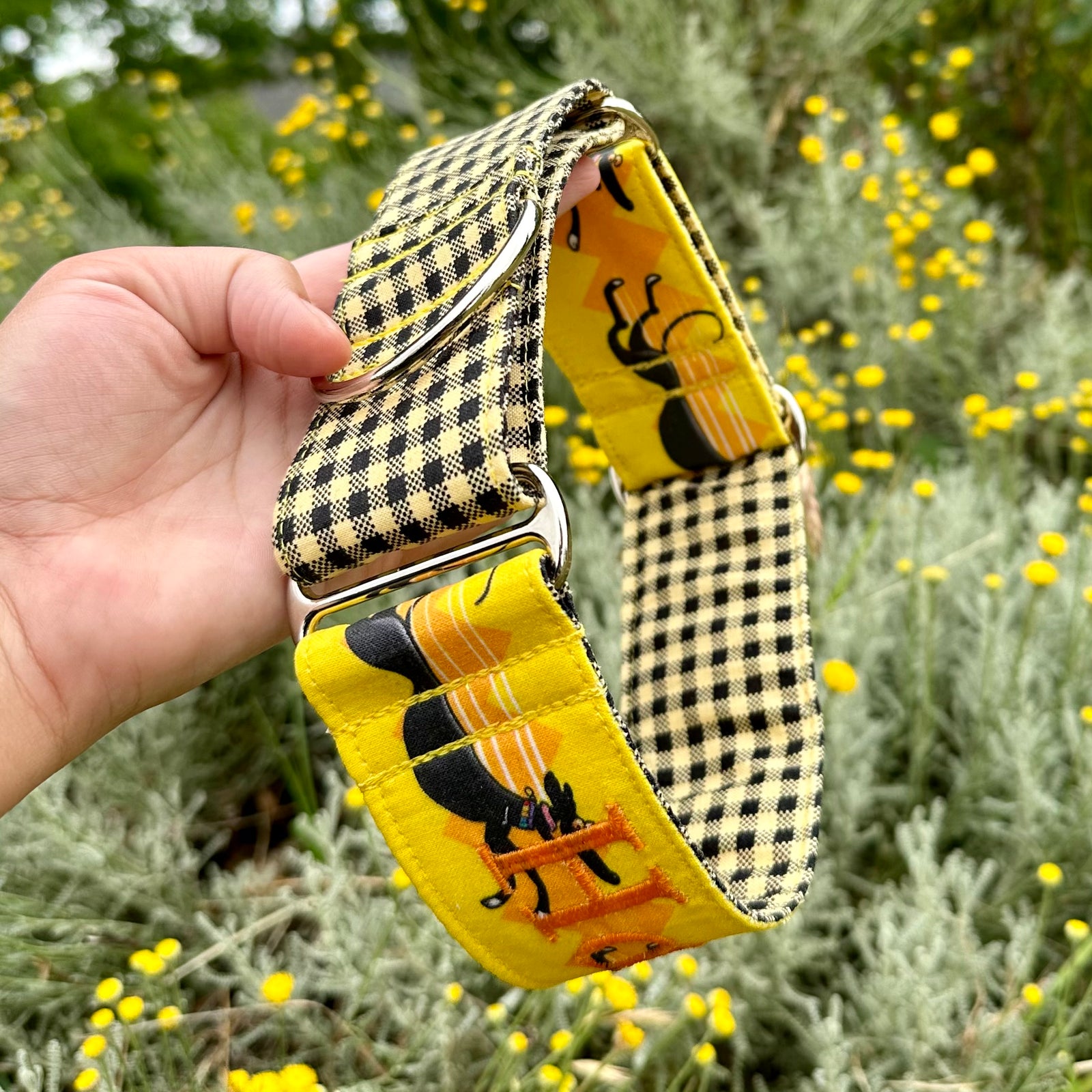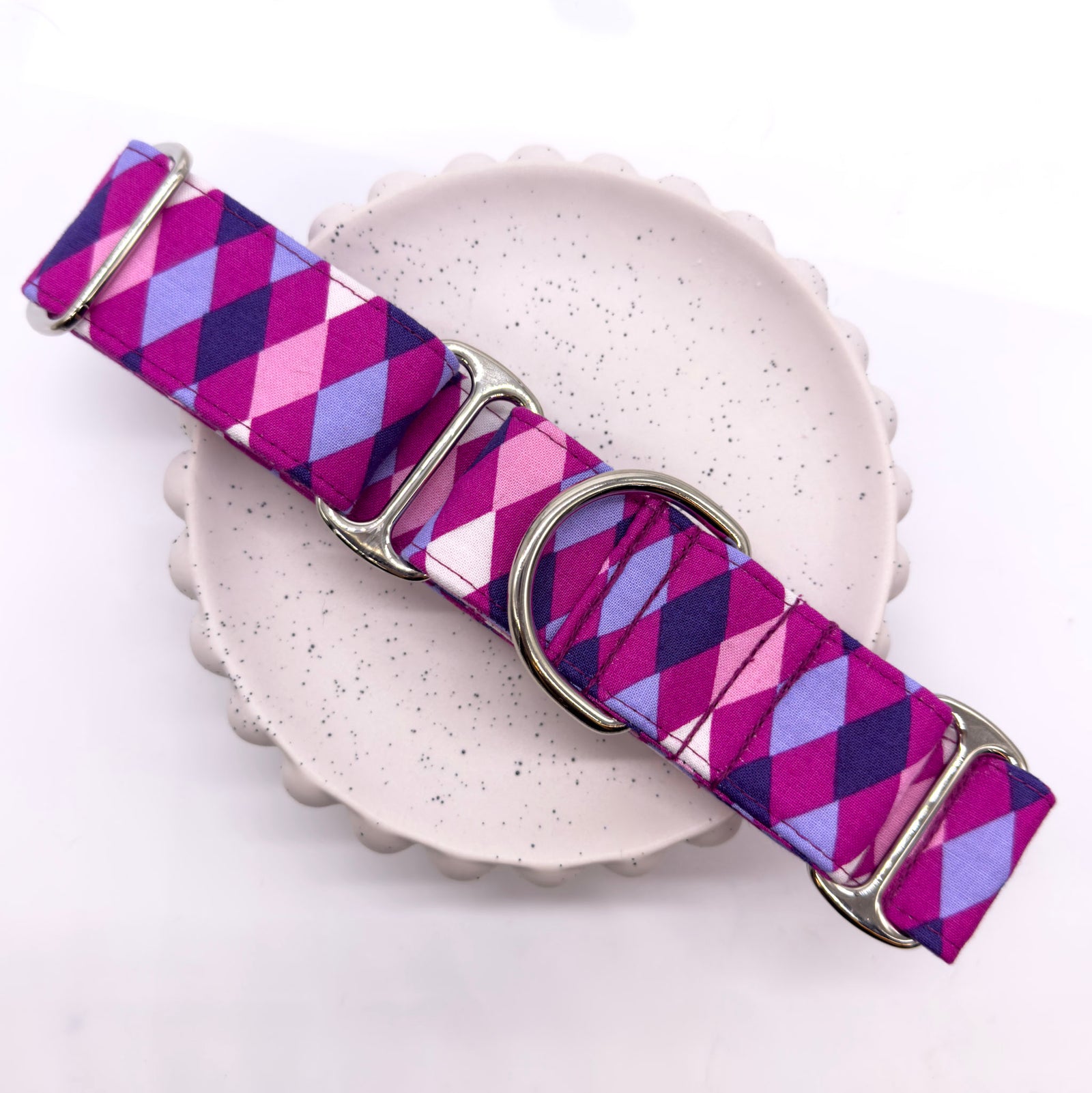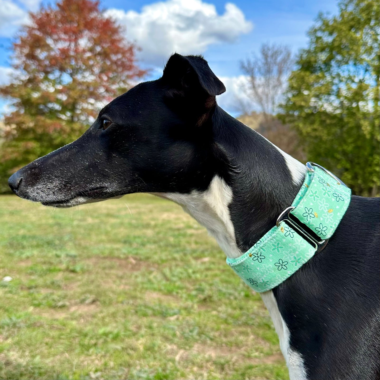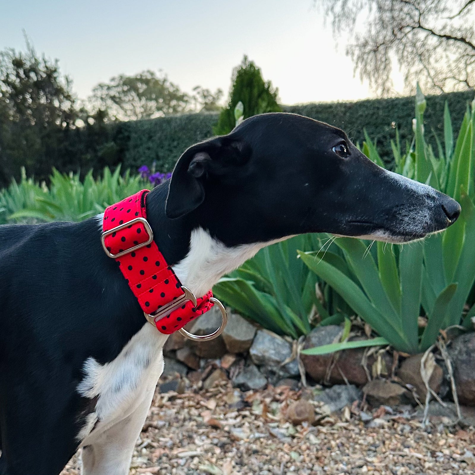 Our martingale dog collars are designed to help prevent dogs from slipping out while providing a comfortable, secure fit. Loved by greyhounds, whippets, and other breeds, they offer gentle control without harsh tightening. Each collar is handmade in our rural NSW studio using high-quality materials and eye-catching fabrics, so your dog can stay safe while looking stylish on every walk. With a wide range of colours and designs to choose from, there’s a Furever Greys collar to match every dog’s personality. Shop our martingale collars and find the perfect fit for your pup today.